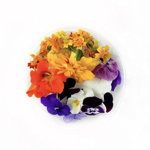 Assorted edible flowers. A mix of the best flowers that we are gifted each week...